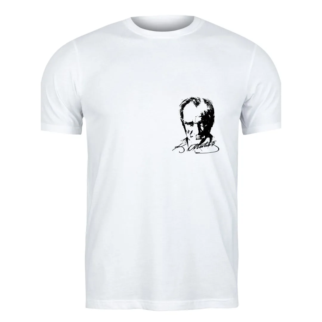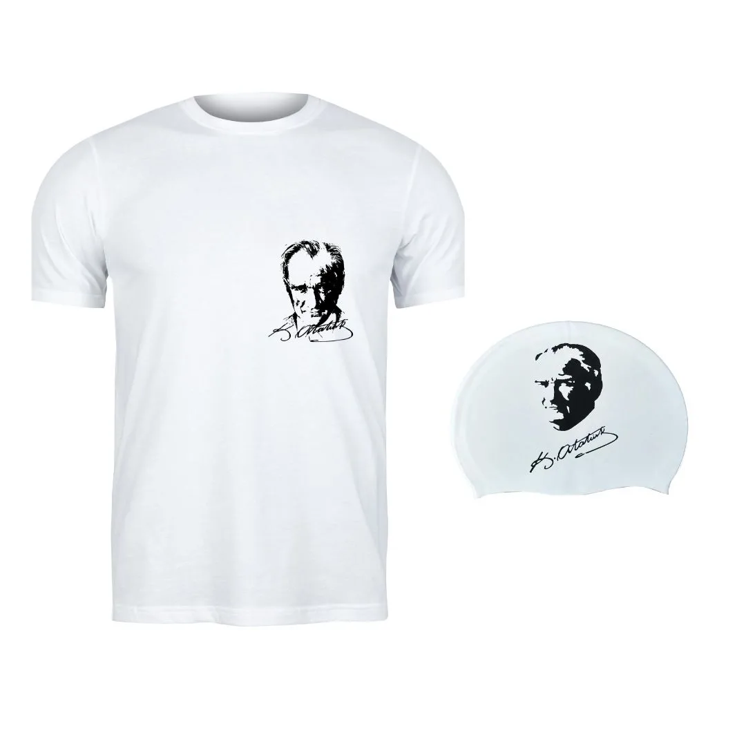 Beyaz T-Shirt Mustafa Kemal Atatürk/İmza Baskılı ve Bone